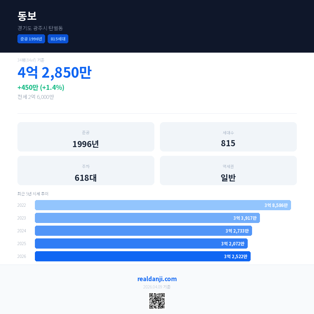동보 최근 거래가는 4억 2,850만입니다. (2026-03)