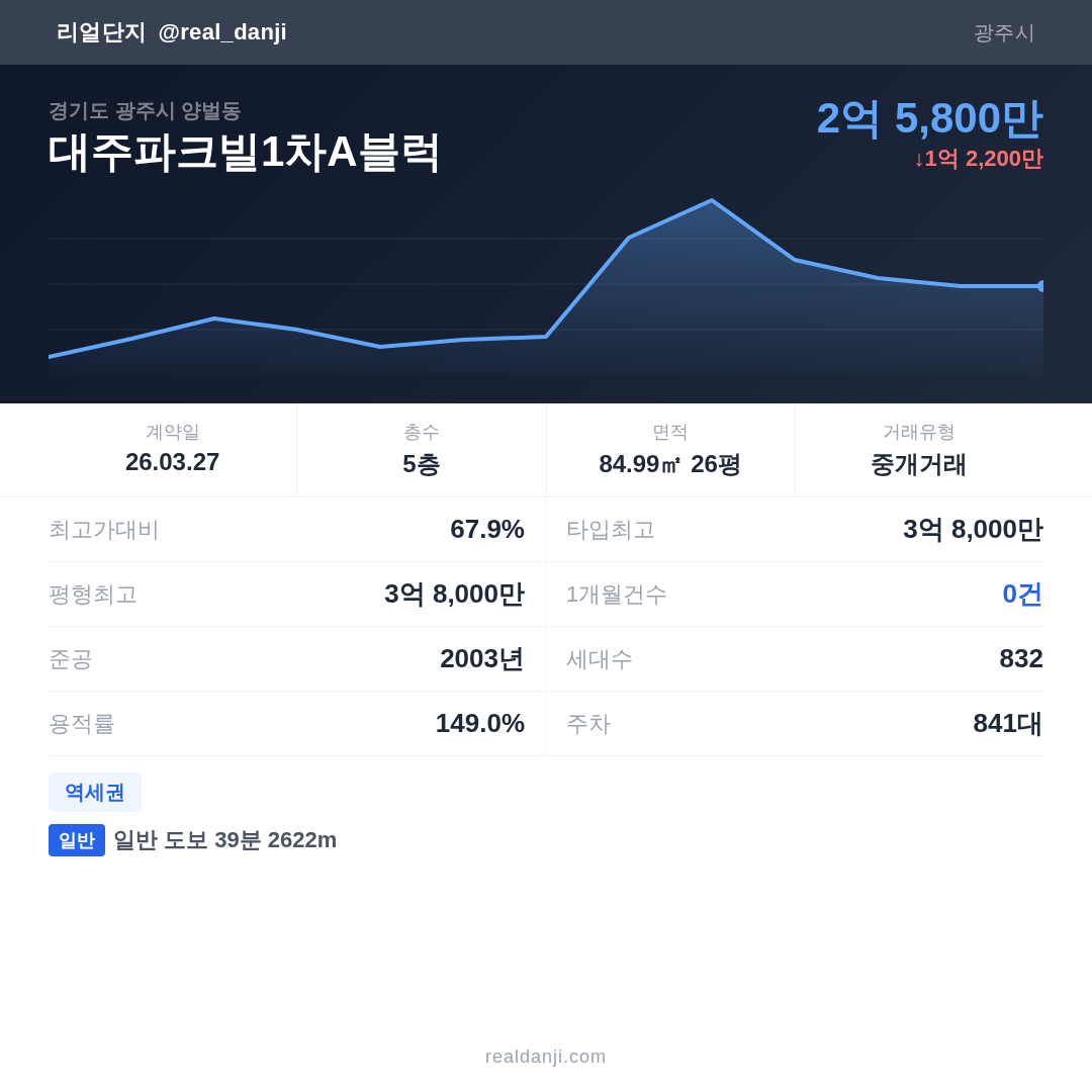 | 2026.03.27 | 85㎡ | 5층 | 2억 5,800만 |