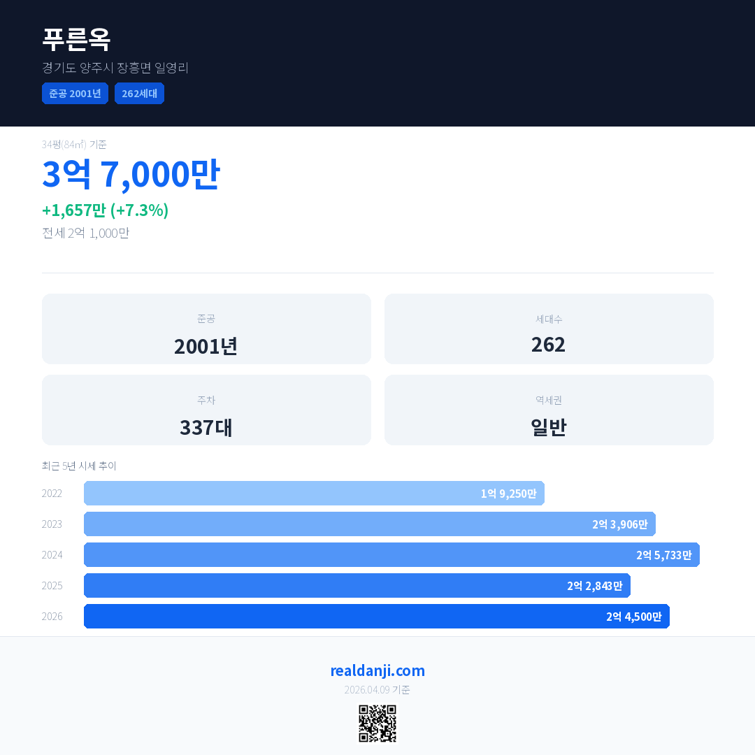 푸른옥 최근 거래가는 3억 7,000만입니다. (2026-03)