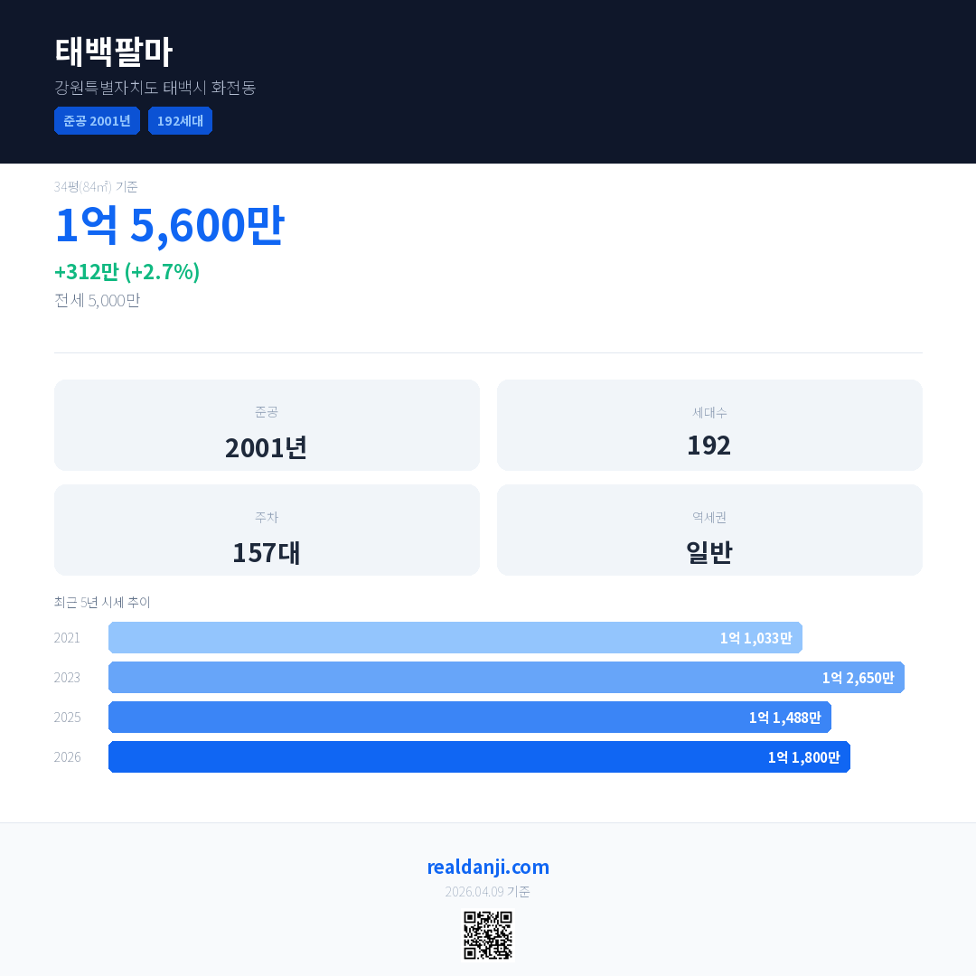 태백팔마 최근 거래가는 1억 5,600만입니다. (2026-03)
