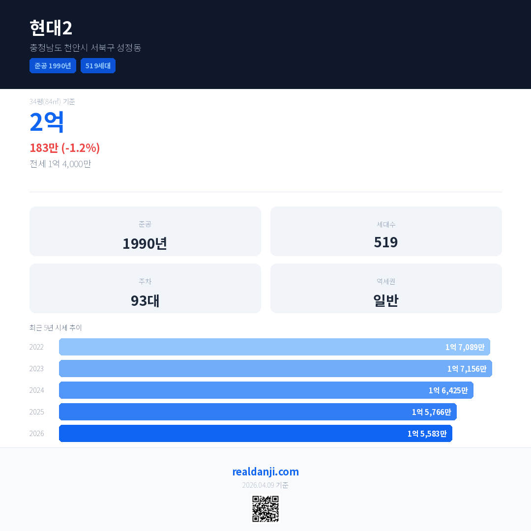 현대2 최근 거래가는 2억입니다. (2026-02)