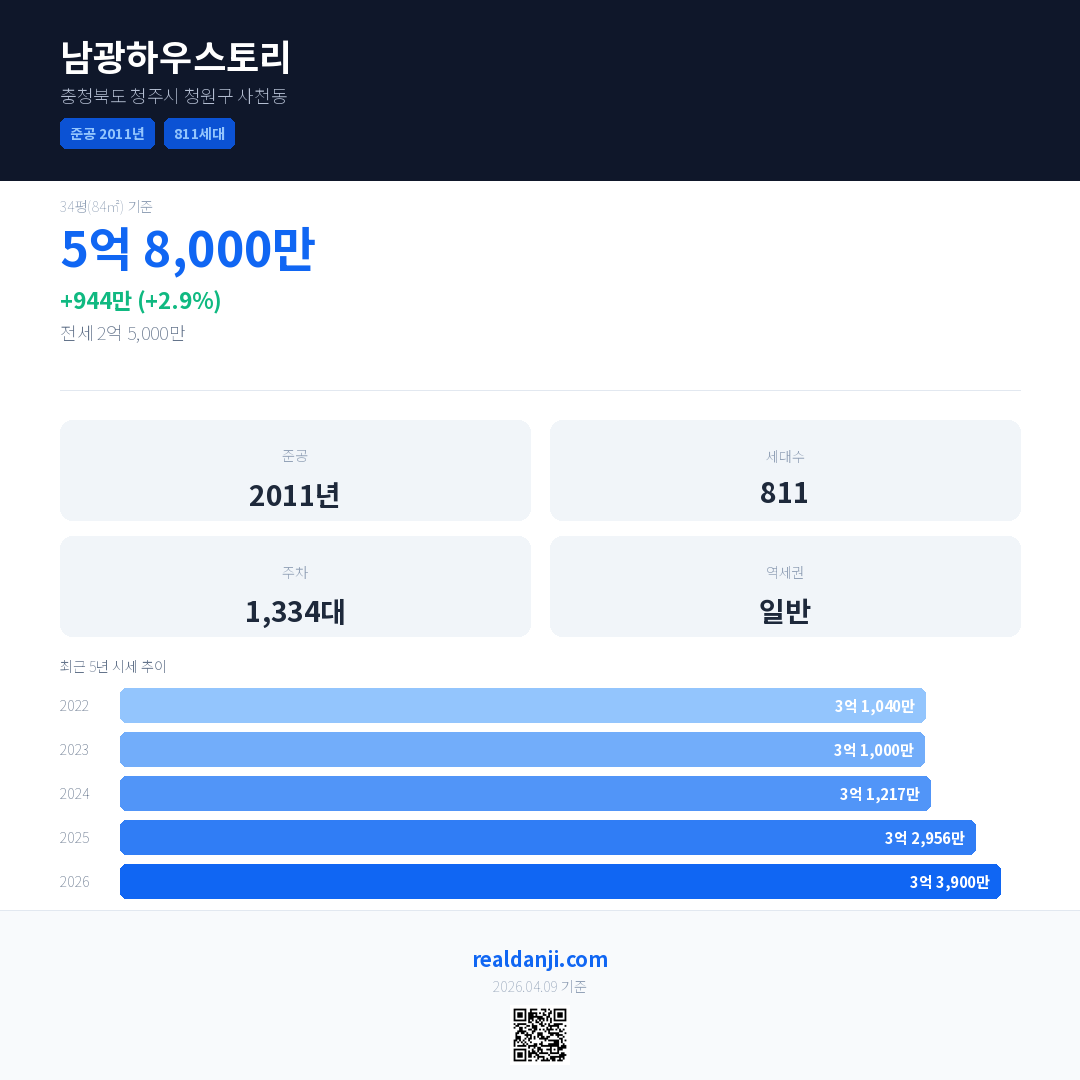 남광하우스토리 최근 거래가는 5억 8,000만입니다. (2026-04)