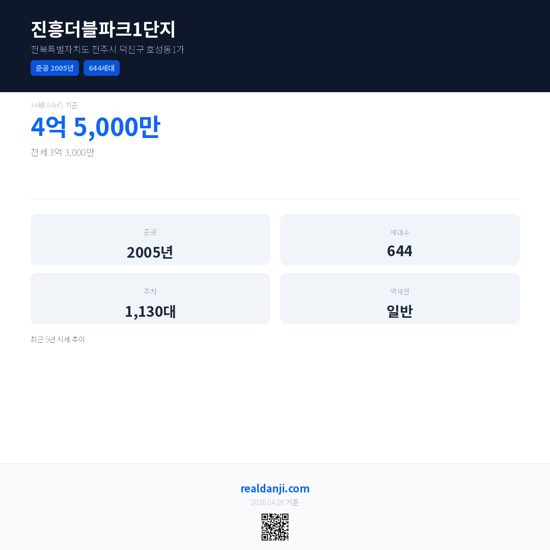 진흥더블파크1단지 최근 거래가는 4억 5,000만입니다. (2026-04)