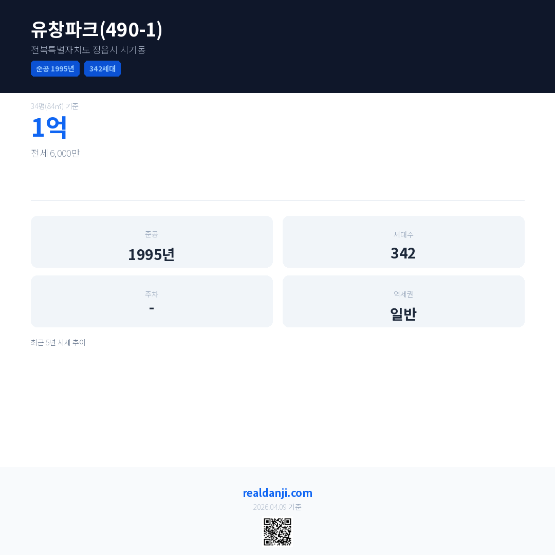 유창파크(490-1) 최근 거래가는 1억입니다. (2026-03)