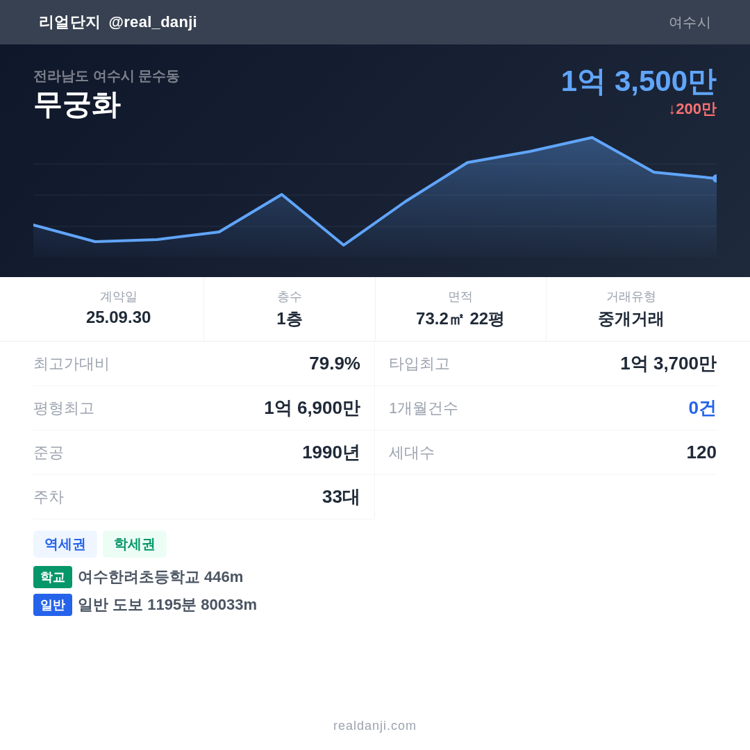 | 2025.09.30 | 73㎡ | 1층 | 1억 3,500만 |