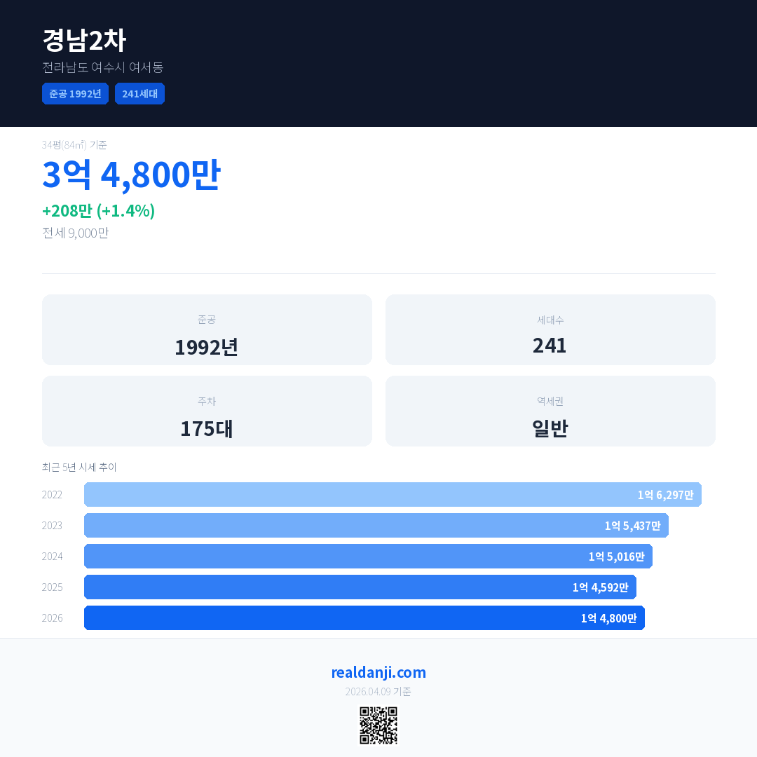 경남2차 최근 거래가는 3억 4,800만입니다. (2026-03)