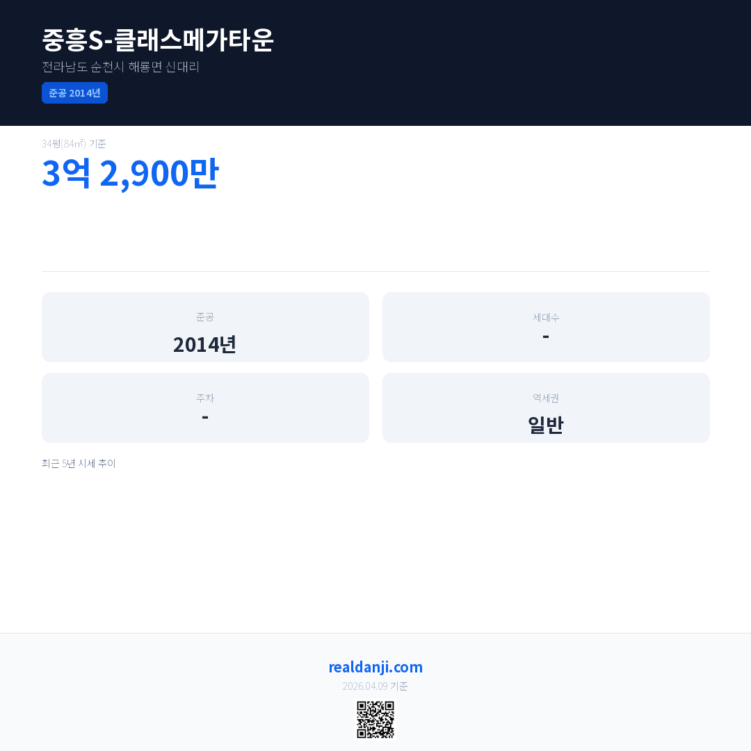 중흥S-클래스메가타운은(는) 2014년에 준공되었으며, 현재 12년차입니다.