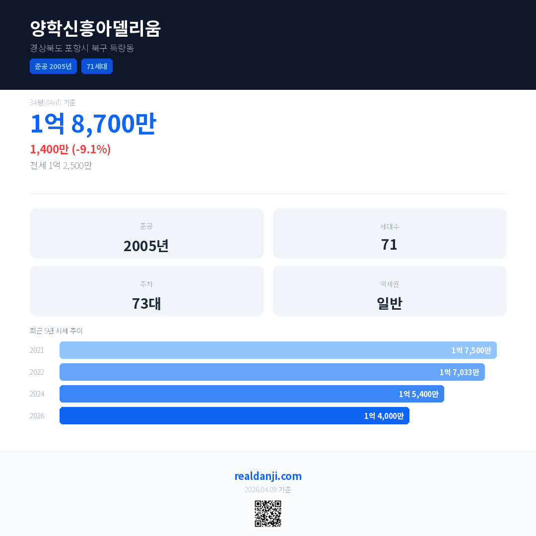 양학신흥아델리움 최근 거래가는 1억 8,700만입니다. (2026-01)