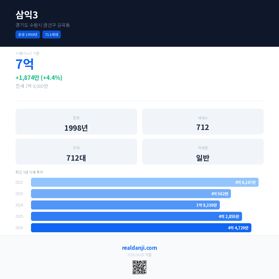 삼익3 최근 거래가는 7억입니다. (2026-04)