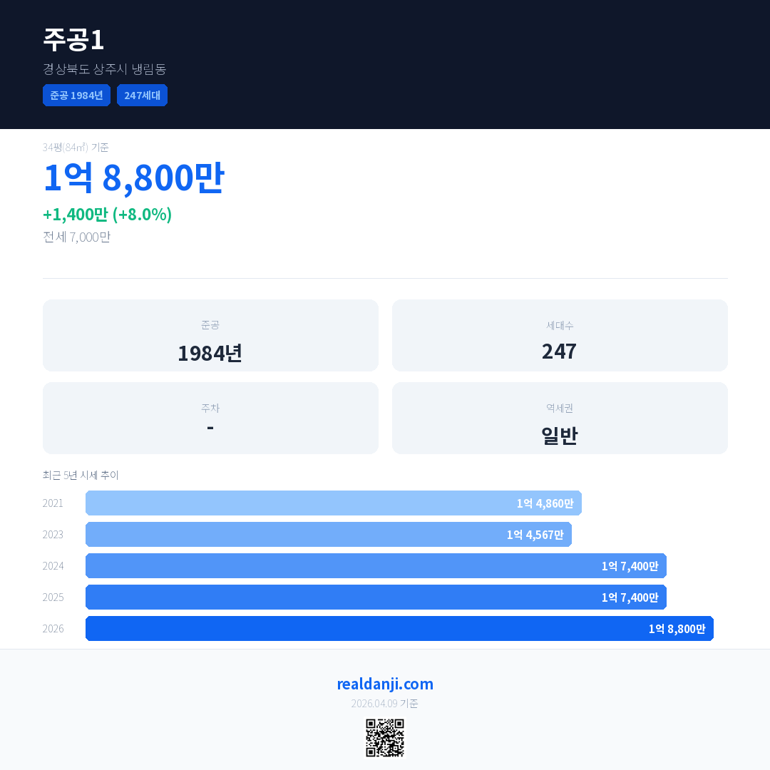 주공1 최근 거래가는 1억 8,800만입니다. (2026-03)