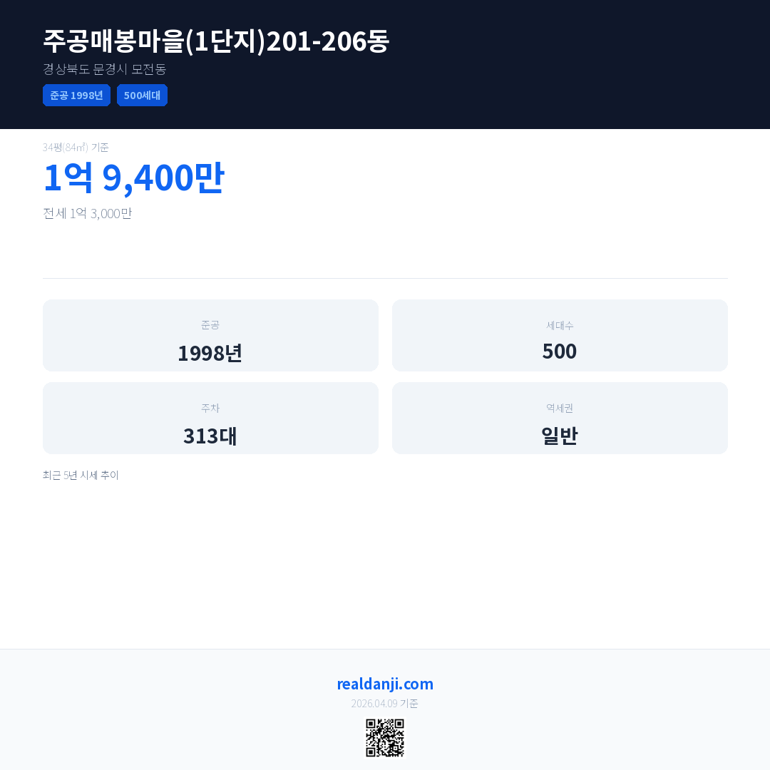 주공매봉마을(1단지)201-206동 최근 거래가는 1억 9,400만입니다. (2026-02)