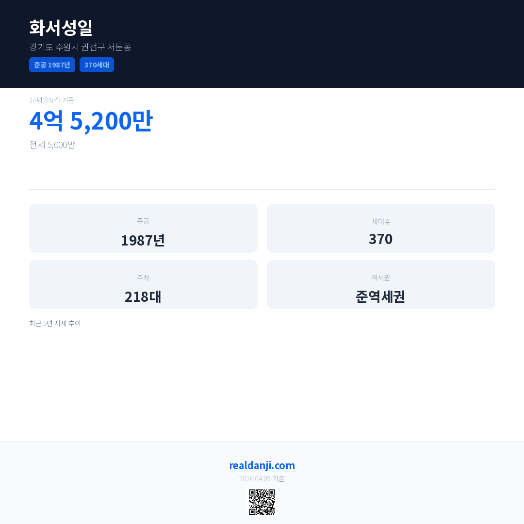 화서성일 최근 거래가는 4억 5,200만입니다. (2026-03)