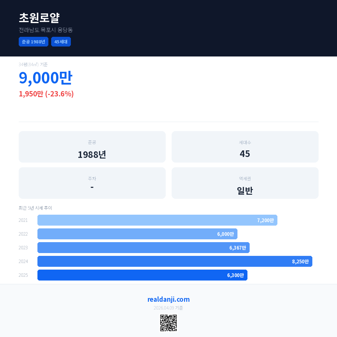 초원로얄 국민평형 기준 2025년 평균 거래가는 6,300만으로, 전년 대비 23.6% 하락 했습니다.