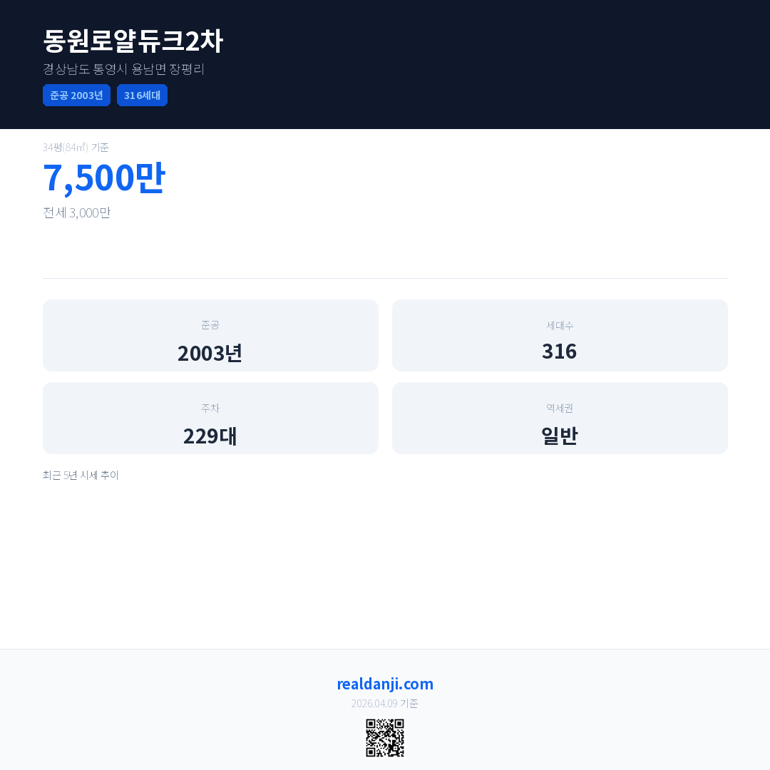 동원로얄듀크2차은(는) 2003년에 준공되었으며, 현재 23년차입니다. 총 316세대 규모입니다.