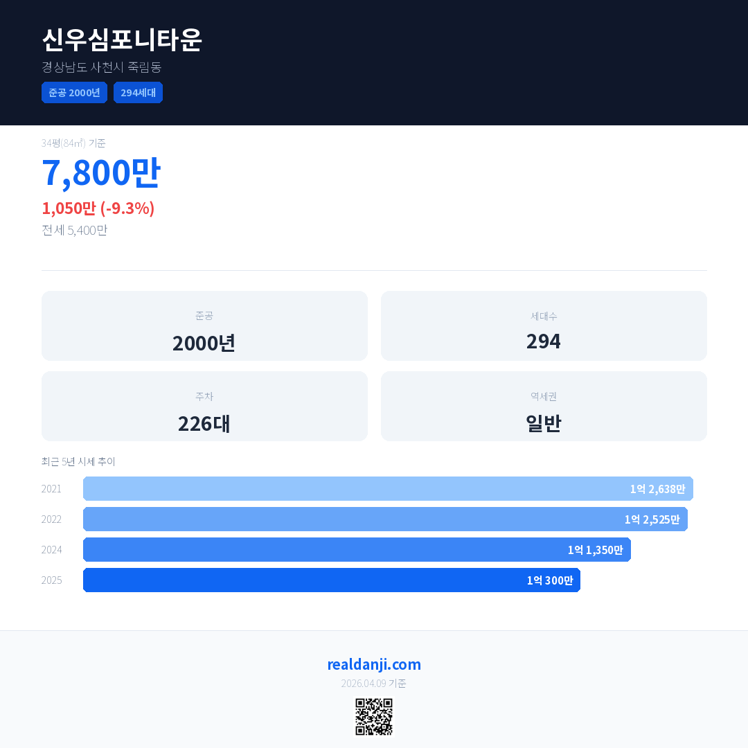 신우심포니타운 최근 거래가는 7,800만입니다. (2026-04)