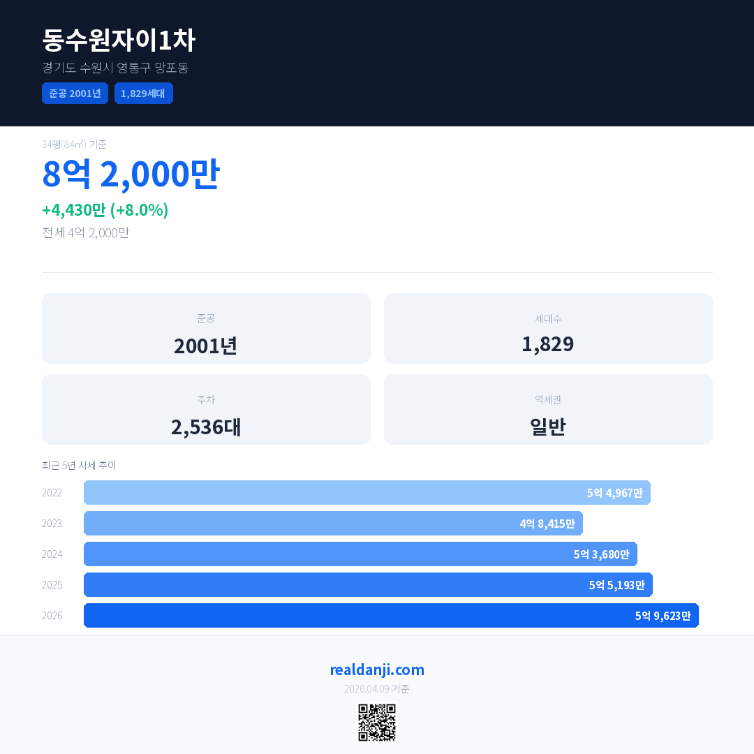 동수원자이1차 최근 거래가는 8억 2,000만입니다. (2026-04)