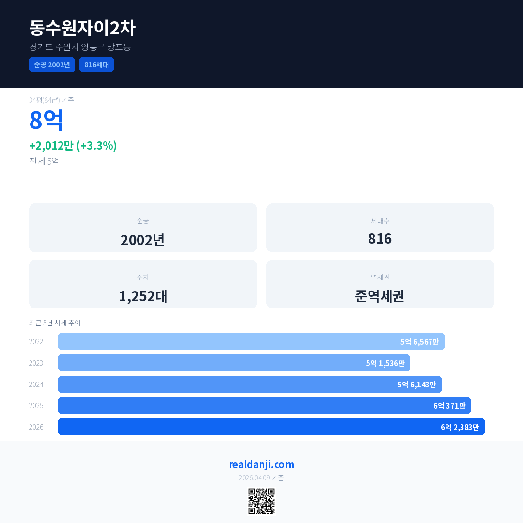 동수원자이2차 최근 거래가는 8억입니다. (2026-04)