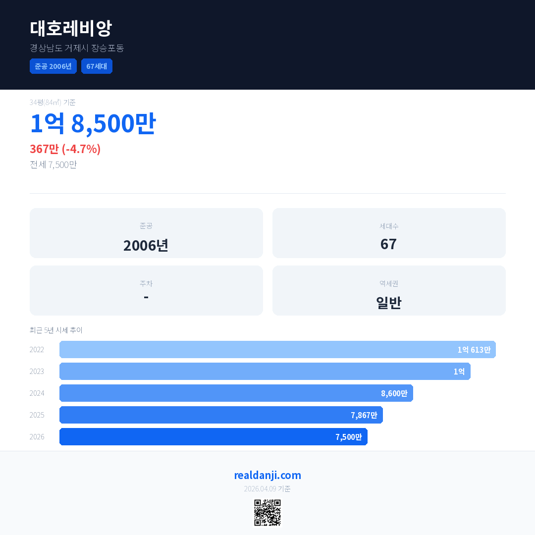 대호레비앙 최근 거래가는 1억 8,500만입니다. (2026-03)