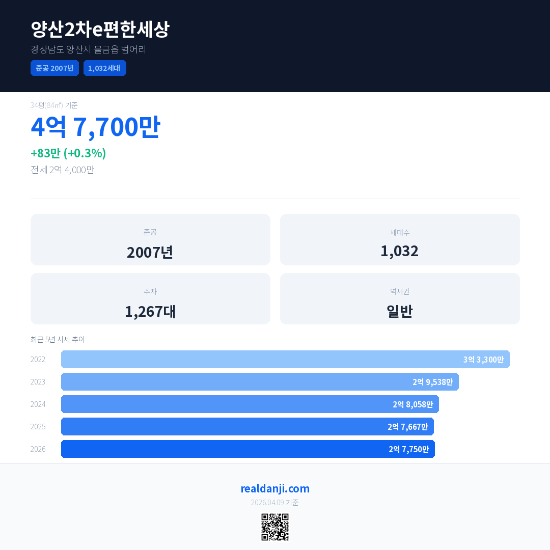 양산2차e편한세상 최근 거래가는 4억 7,700만입니다. (2026-03)