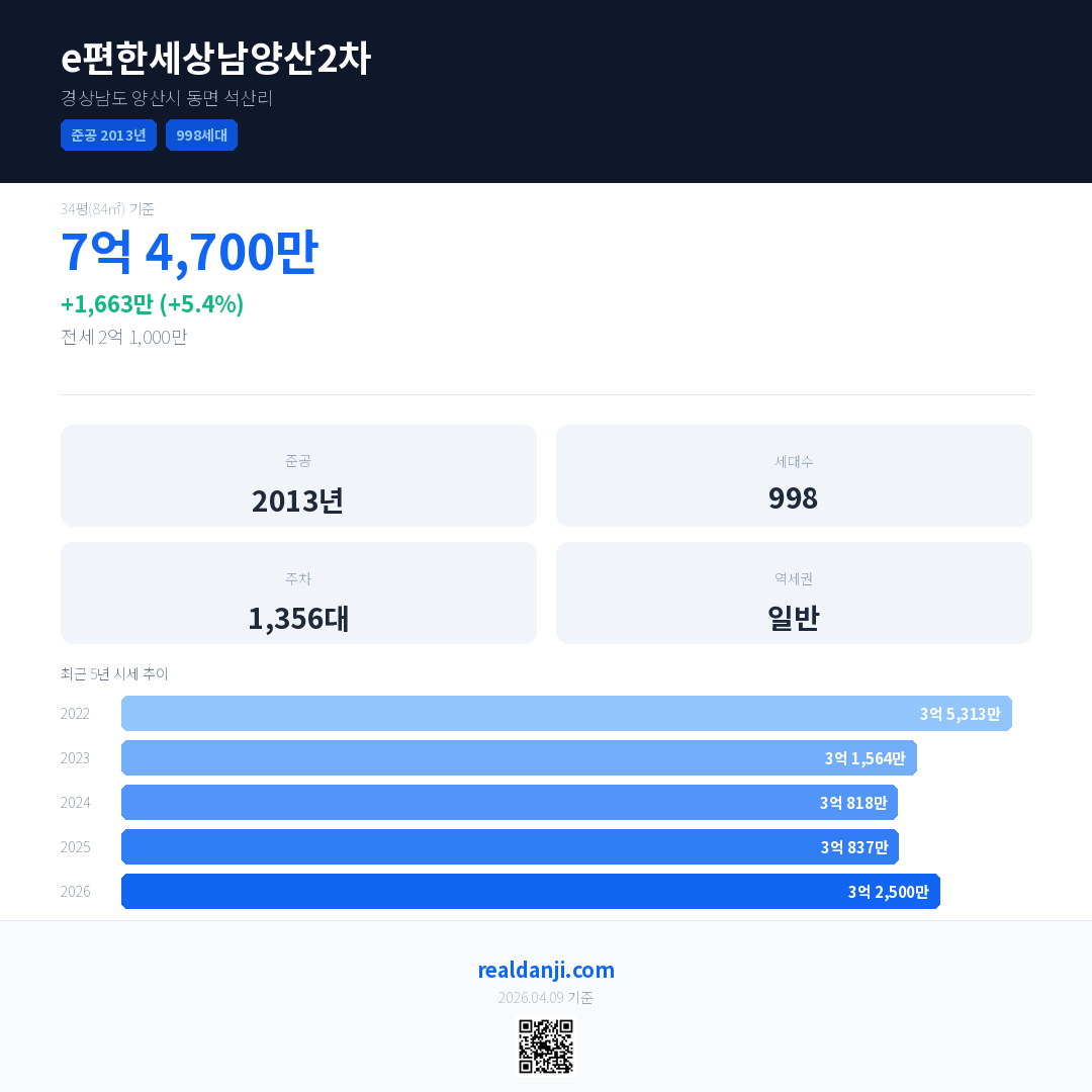 e편한세상남양산2차 최근 거래가는 7억 4,700만입니다. (2026-03)