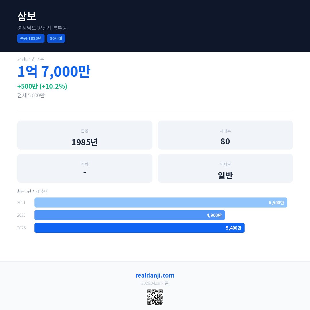 삼보 국민평형 기준 2026년 평균 거래가는 5,400만으로, 전년 대비 10.2% 상승 했습니다.