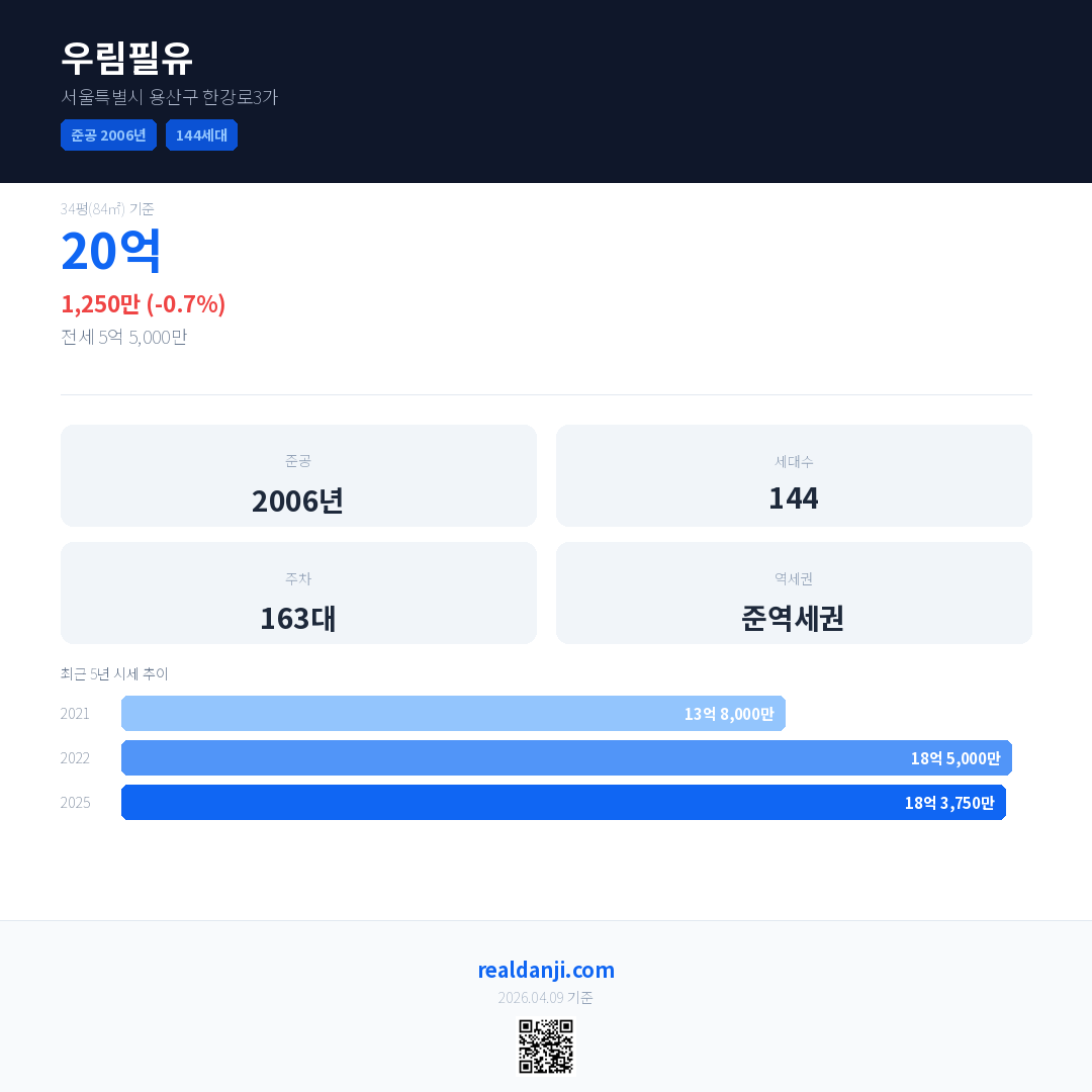 우림필유 최근 거래가는 20억입니다. (2025-09)