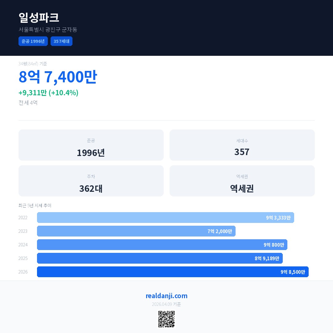 일성파크 최근 거래가는 9억 5,000만입니다. (2026-03)