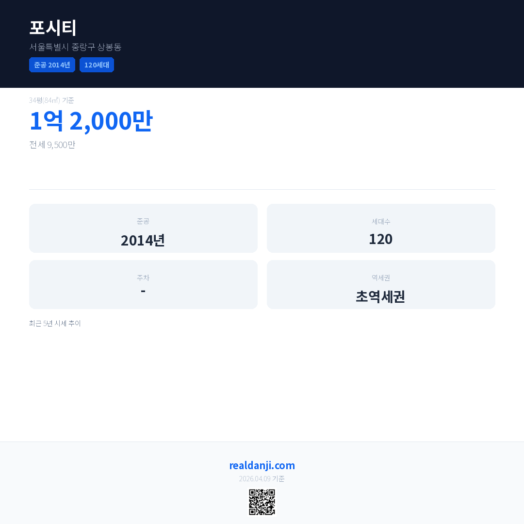 포시티은(는) 2014년에 준공되었으며, 현재 12년차입니다. 총 120세대 규모입니다.