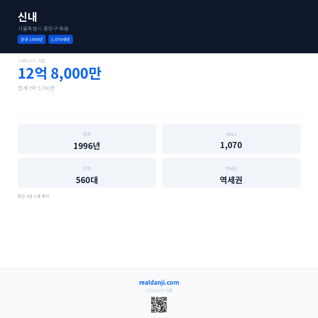 신내 최근 거래가는 12억 8,000만입니다. (2026-04)