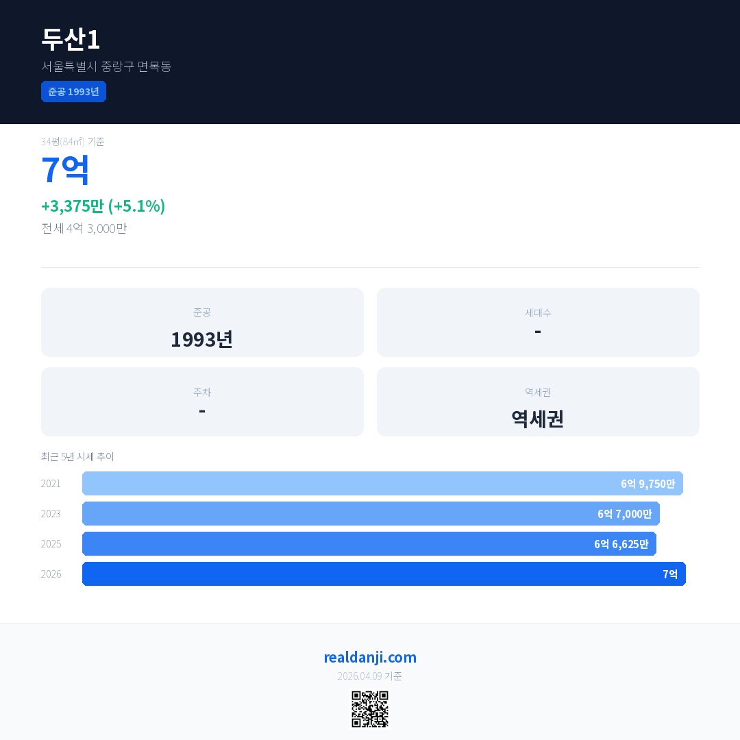 두산1 최근 거래가는 7억입니다. (2025-11)
