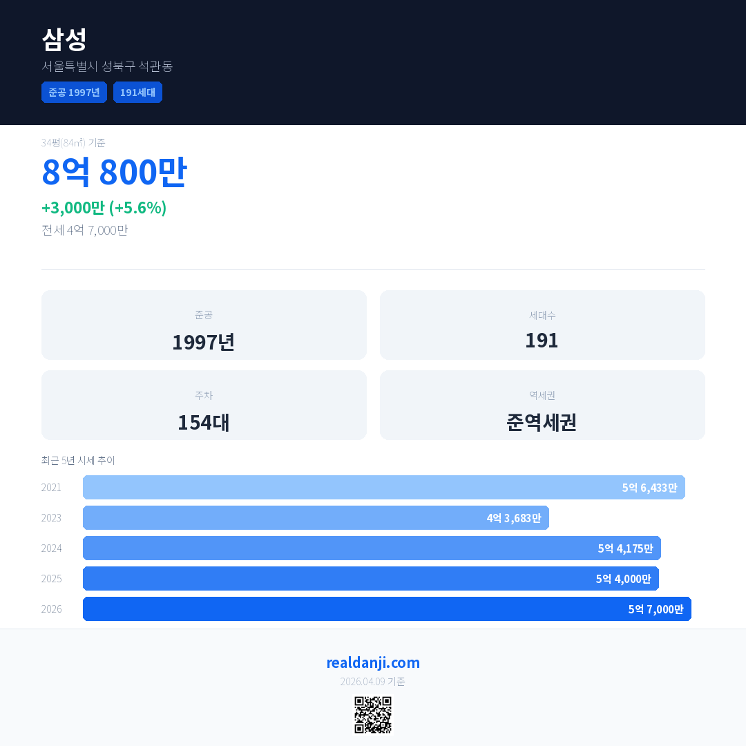 삼성 최근 거래가는 8억 800만입니다. (2026-02)