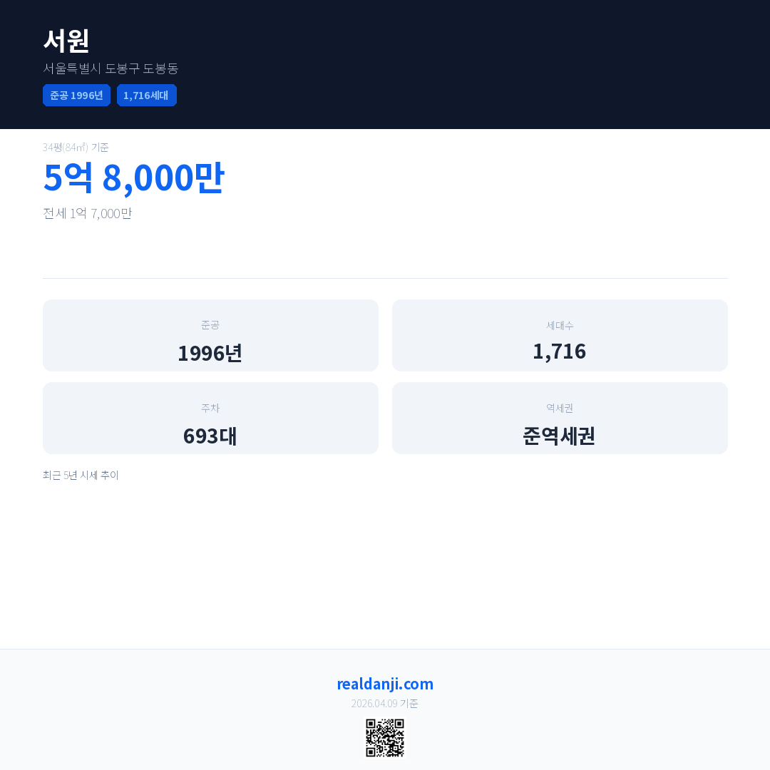 서원 최근 거래가는 5억 8,000만입니다. (2026-04)