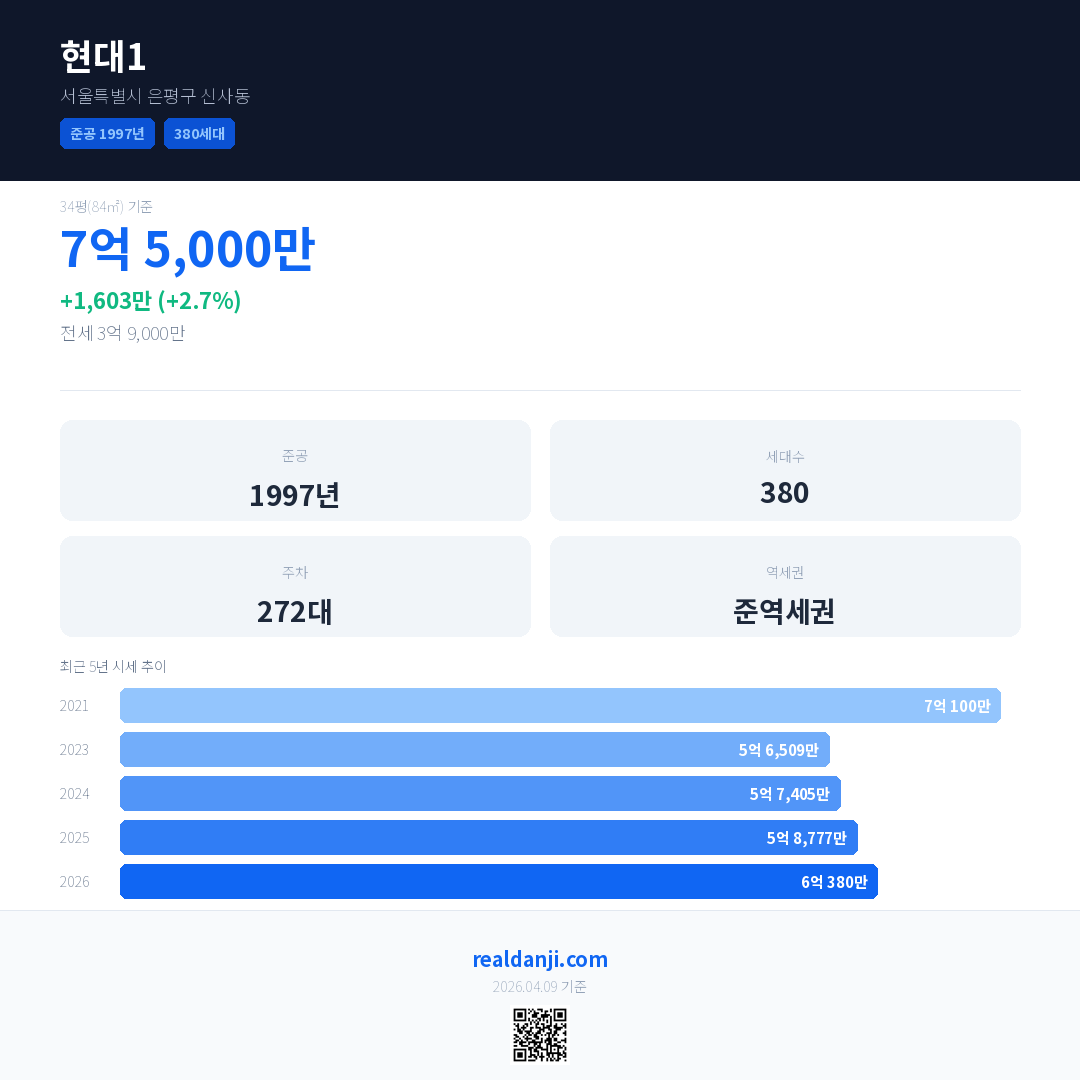 현대1 최근 거래가는 6억입니다. (2026-04)