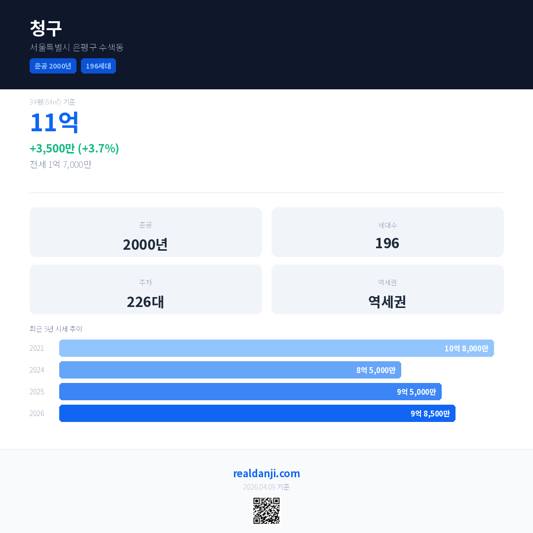 청구 최근 거래가는 11억입니다. (2026-03)