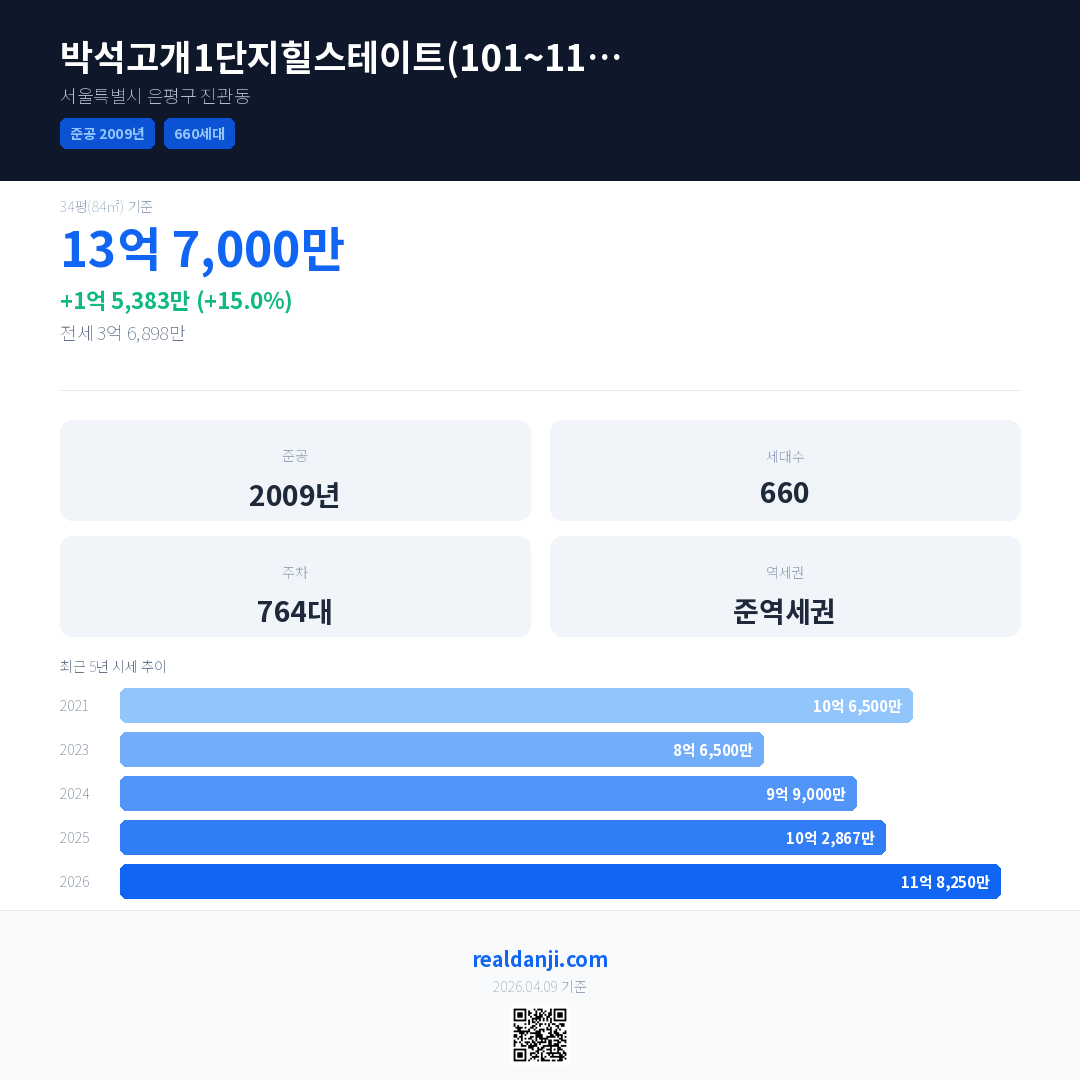 박석고개1단지힐스테이트(101~111동)BL2-12 최근 거래가는 13억 7,000만입니다. (2026-03)
