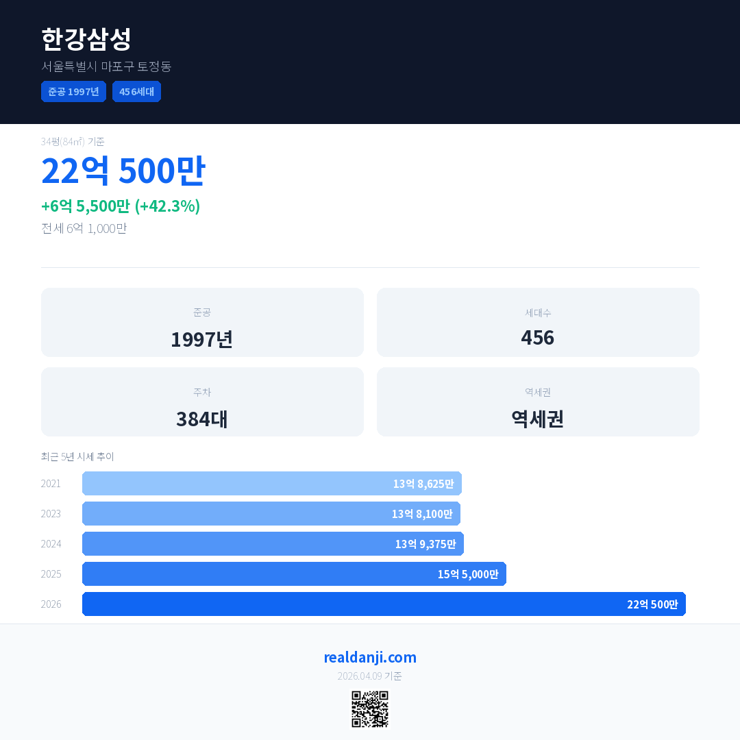 한강삼성 최근 거래가는 22억 500만입니다. (2026-03)