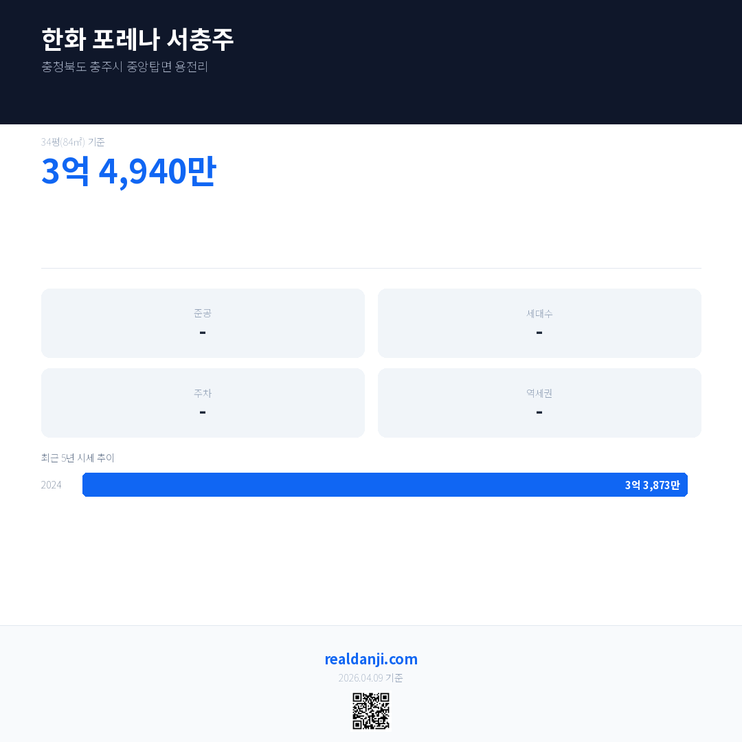 한화 포레나 서충주 최근 거래가는 3억 4,940만입니다.