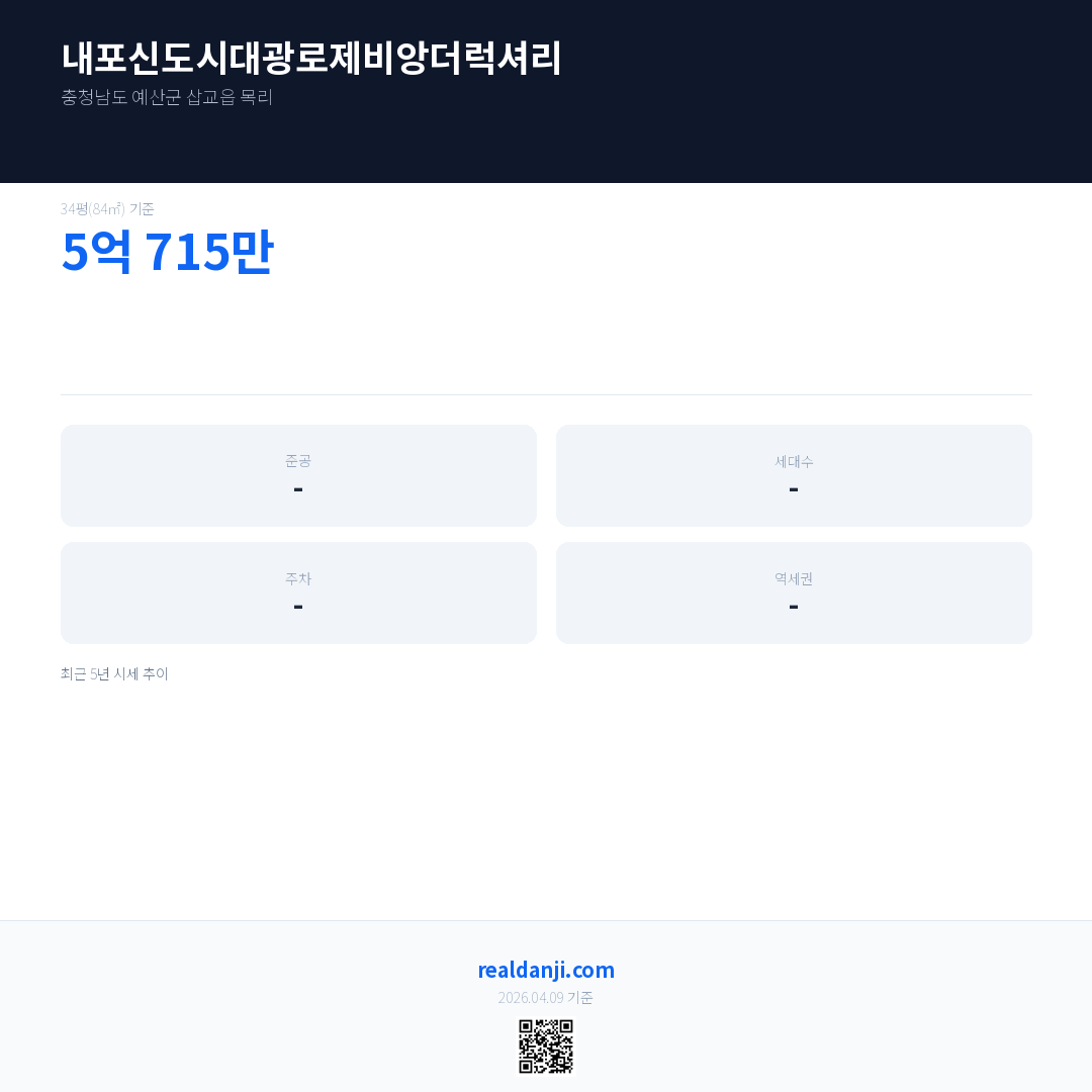 내포신도시대광로제비앙더럭셔리 최근 거래가는 5억 715만입니다. (2026-03)