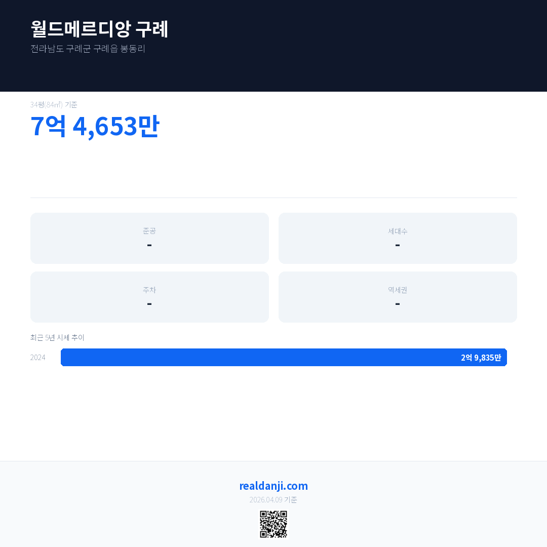 월드메르디앙 구례 최근 거래가는 3억 1,750만입니다. (2024-11)