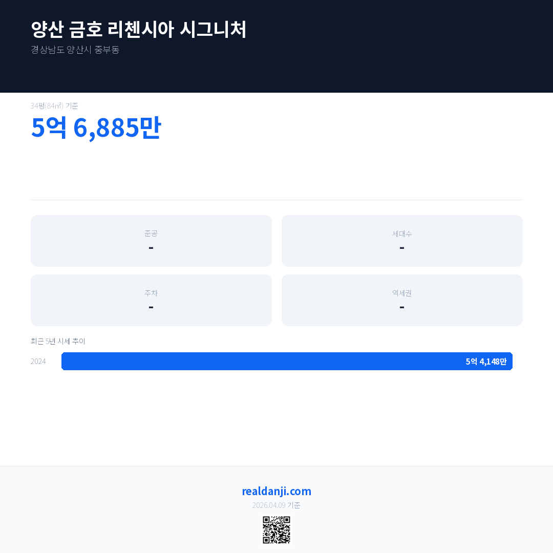 양산 금호 리첸시아 시그니처 최근 거래가는 5억 1,470만입니다. (2024-09)