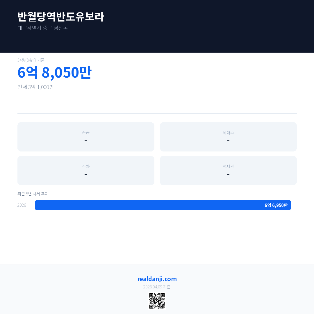 반월당역반도유보라 최근 거래가는 6억 5,150만입니다. (2026-03)