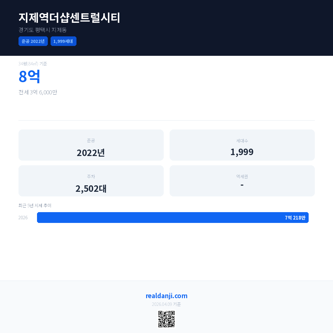 지제역더샵센트럴시티 최근 거래가는 6억 9,000만입니다. (2026-04)