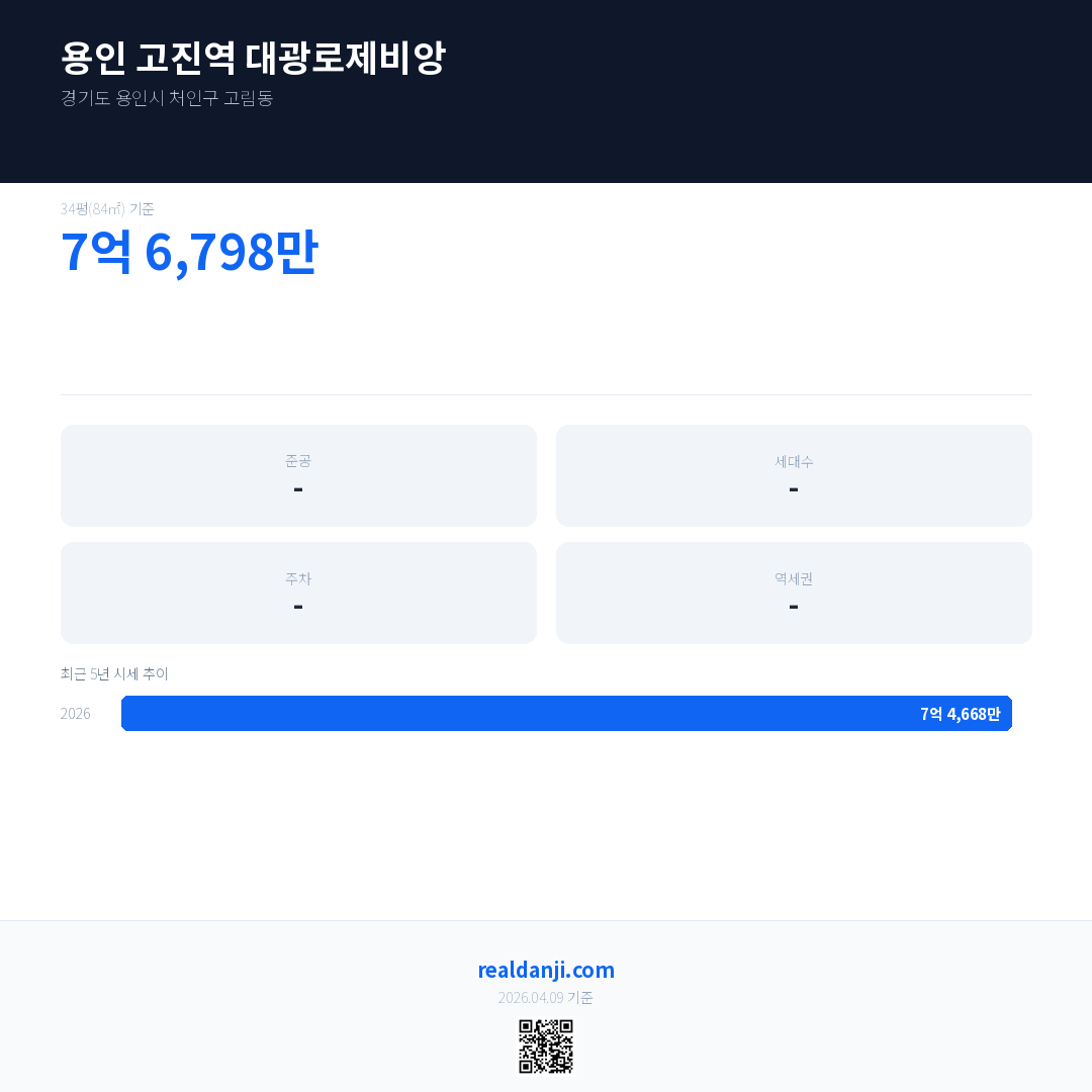 용인 고진역 대광로제비앙 최근 거래가는 7억 6,798만입니다. (2026-04)