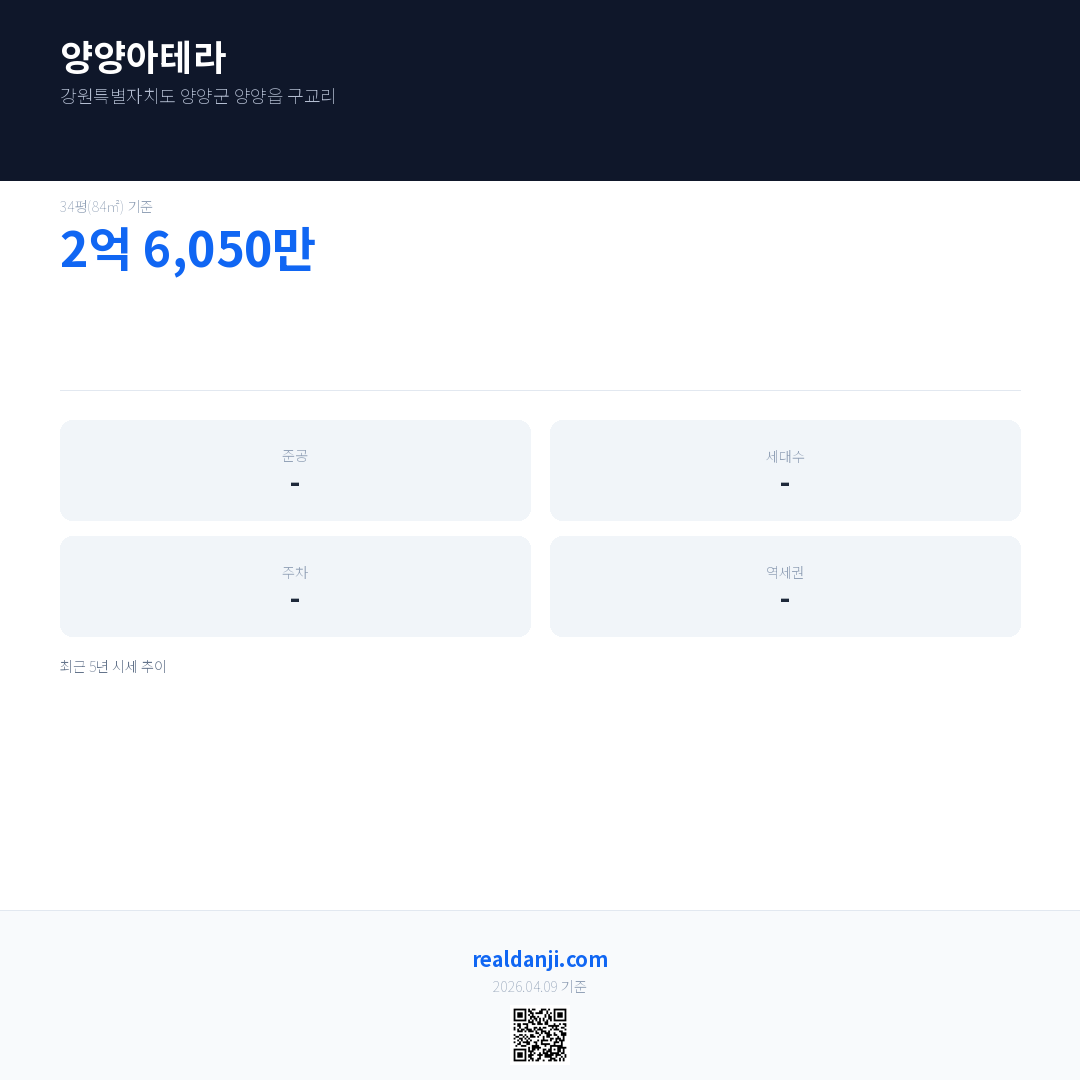 양양아테라 최근 거래가는 2억 6,050만입니다. (2026-03)