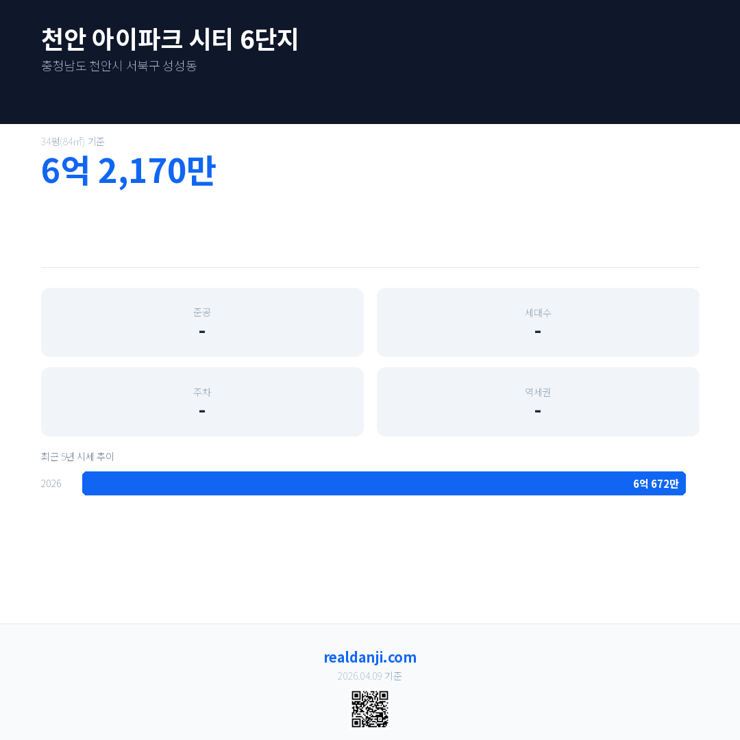 천안 아이파크 시티 6단지 최근 거래가는 8억 7,940만입니다. (2026-04)