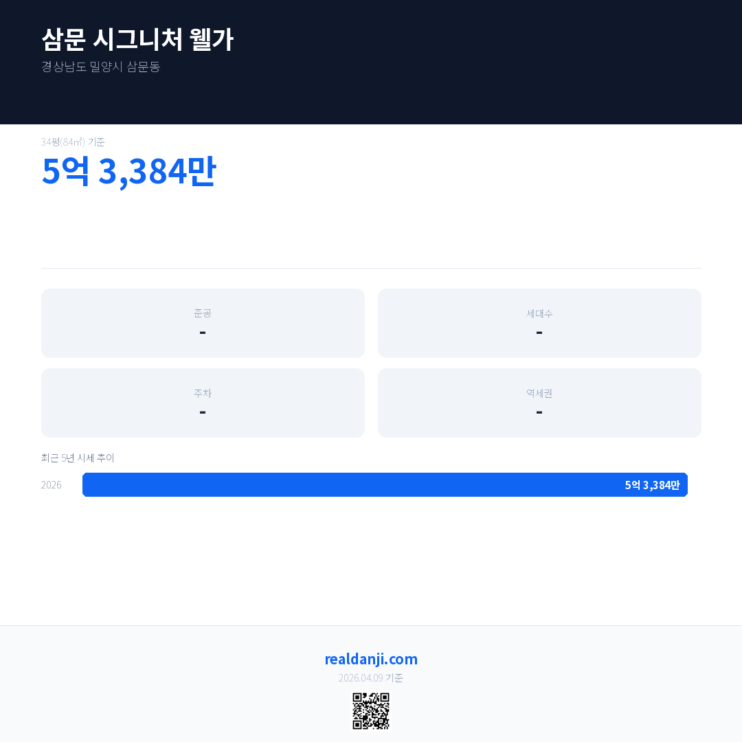 삼문 시그니처 웰가 최근 거래가는 5억 3,384만입니다.