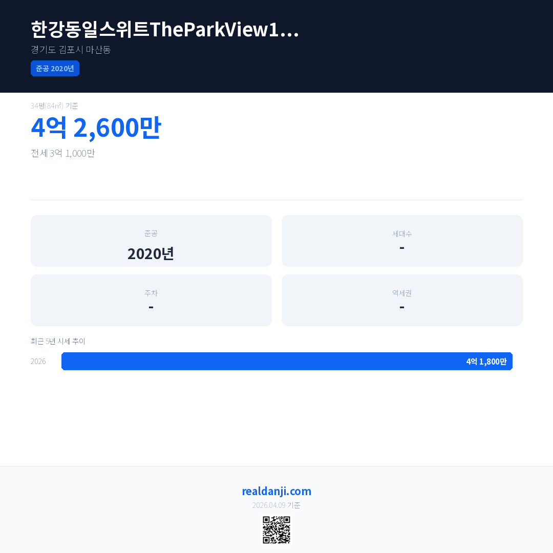 한강동일스위트TheParkView1단지 최근 거래가는 4억 2,600만입니다. (2026-04)