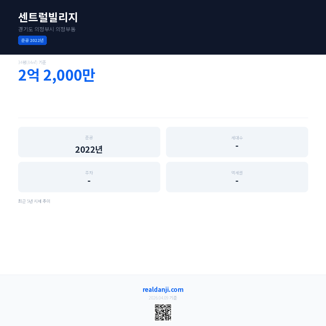 센트럴빌리지 최근 거래가는 2억 2,000만입니다. (2026-04)