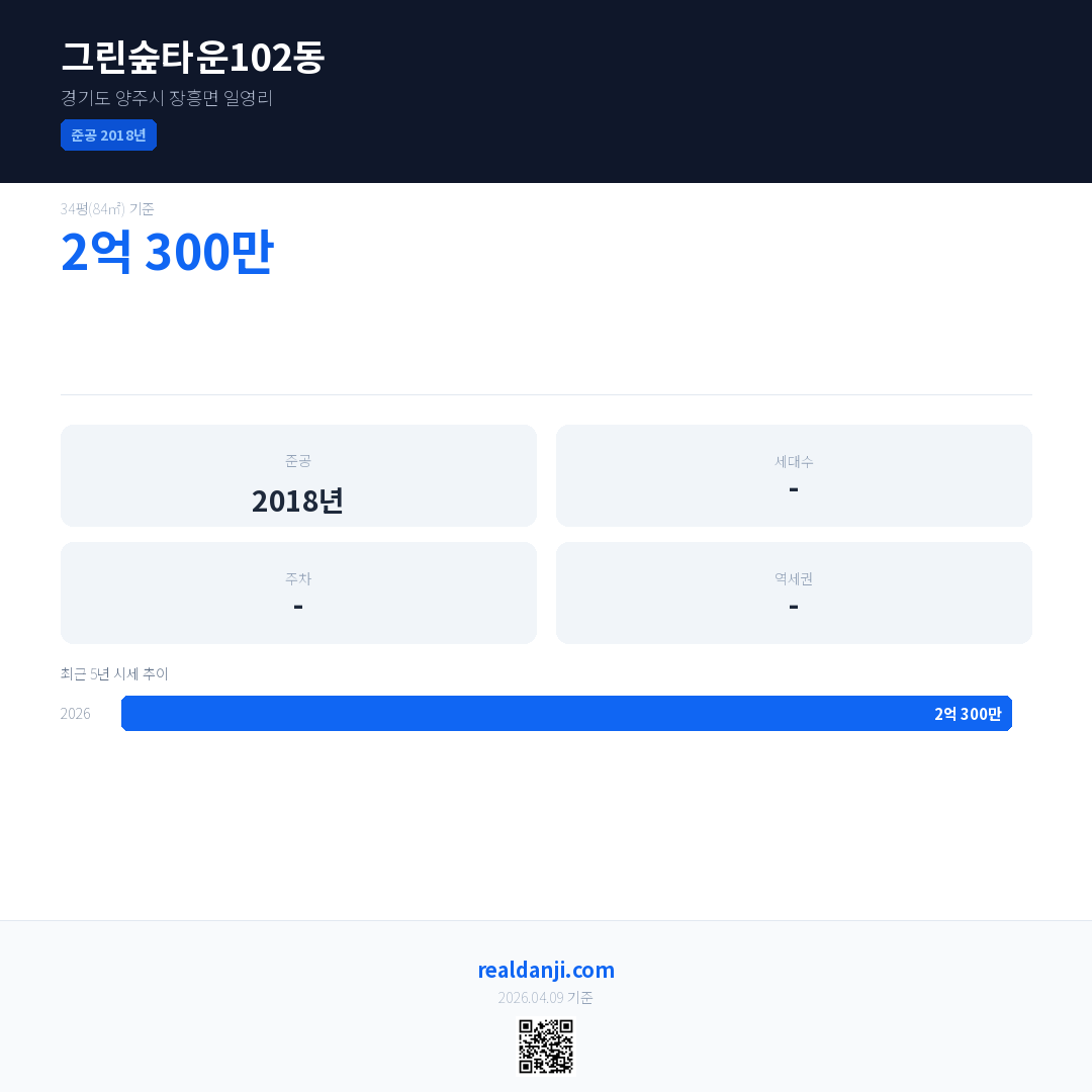 그린숲타운102동 최근 거래가는 2억 300만입니다.