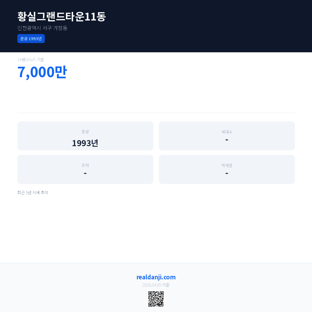 황실그랜드타운11동 최근 거래가는 7,000만입니다.